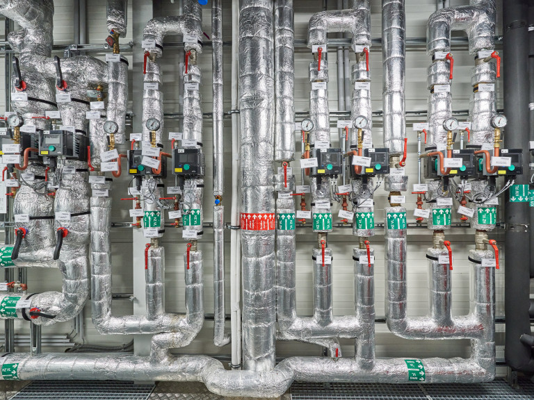 Media: steam / heating water / cooling water / ventilation / sanitation / wastewater / laboratory gases / compressed air
